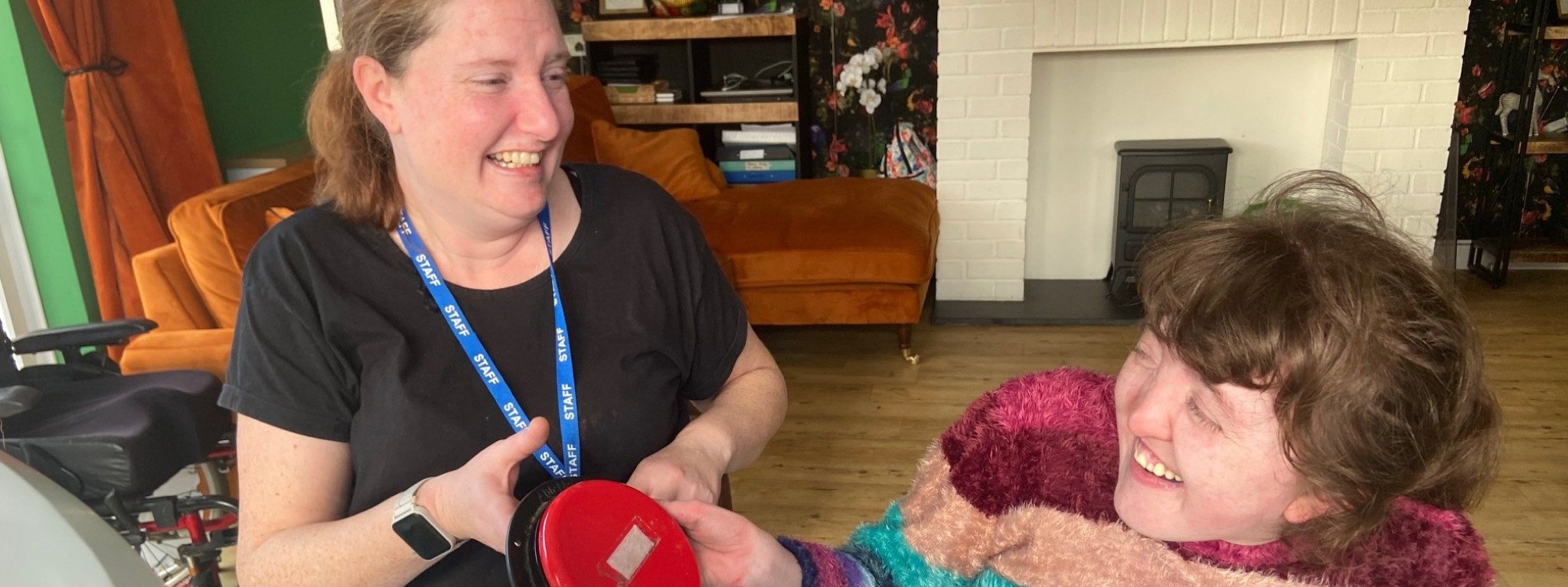 Hannah started at Dame Hannahs in December 2024 aged 27 and lives in Newberry bungalow. She has a microdeletion on the long arm of chromosome 6 which causes global delay and short stature along with some physical disabilities.