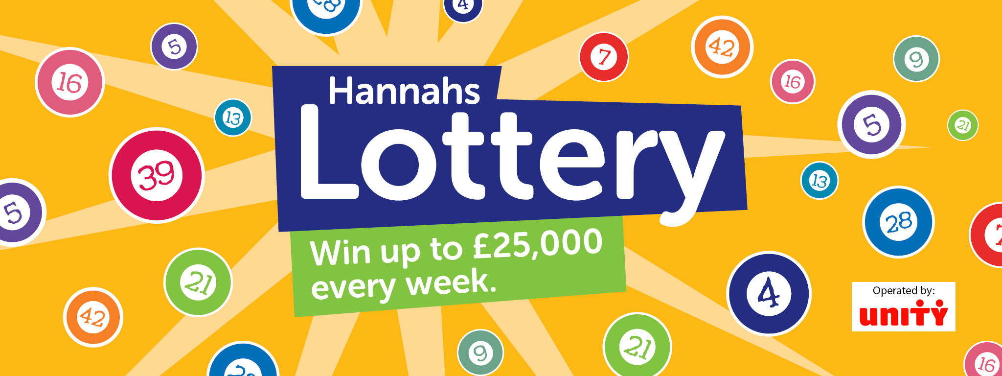 Every Saturday Dame Hannahs Unity Lottery players are in with a chance of winning £25,000. Could you be this week’s winner? Sign up to our Lottery via Direct Debit here or by downloading an application form and posting it back to us for free.